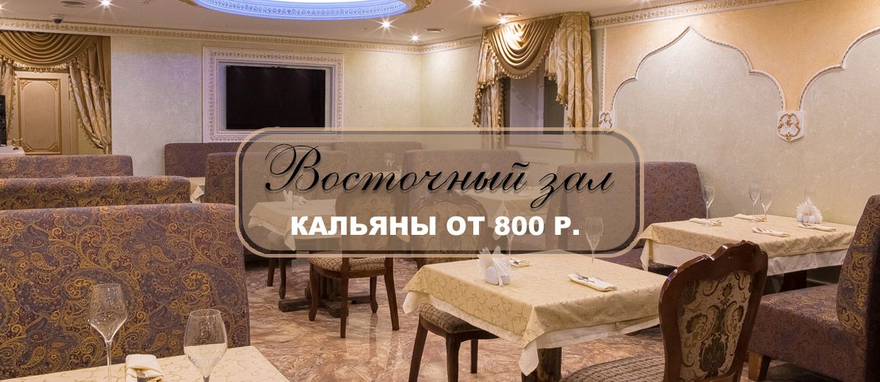 «Восточный» зал - для души, место для неспешного, изысканного отдыха. Это уютный уголок, где вы можете отдохнуть от городской суеты в яркой уютной атмосфере жарких восточных стран. Наш аутентичный интерьер и таинственная обстановка создают для вас особую атмосферу.